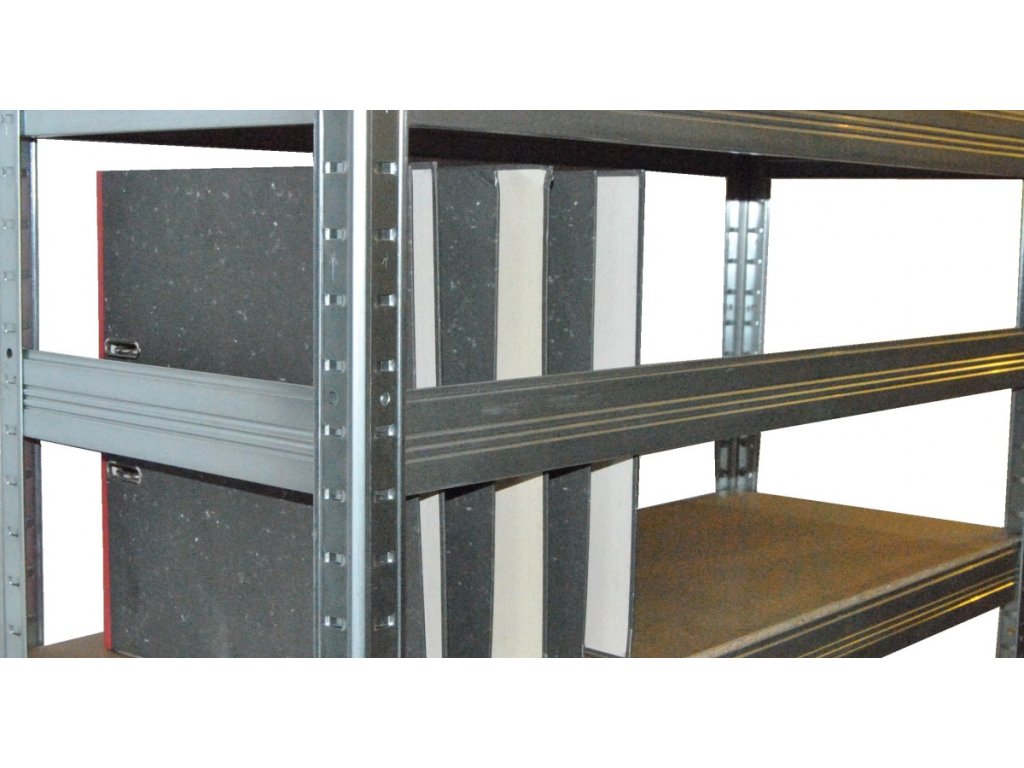 Die Begrenzung für Metallregal - verhindert von Sachen oder Ordner ausfall. Die Begrenzung kann in freiwillige höhe von 35 mm (umstellbar) sowie die Bodenträger installiert werden. In jedem Gestellzelle (der Platz zwischen den Fachböden) können Sie eine beliebige anzahl von Begrenzung installieren. Die Begrenzung setzen Sie ganz einfach in den Gestell ein (ohne Schrauben und Müttern).