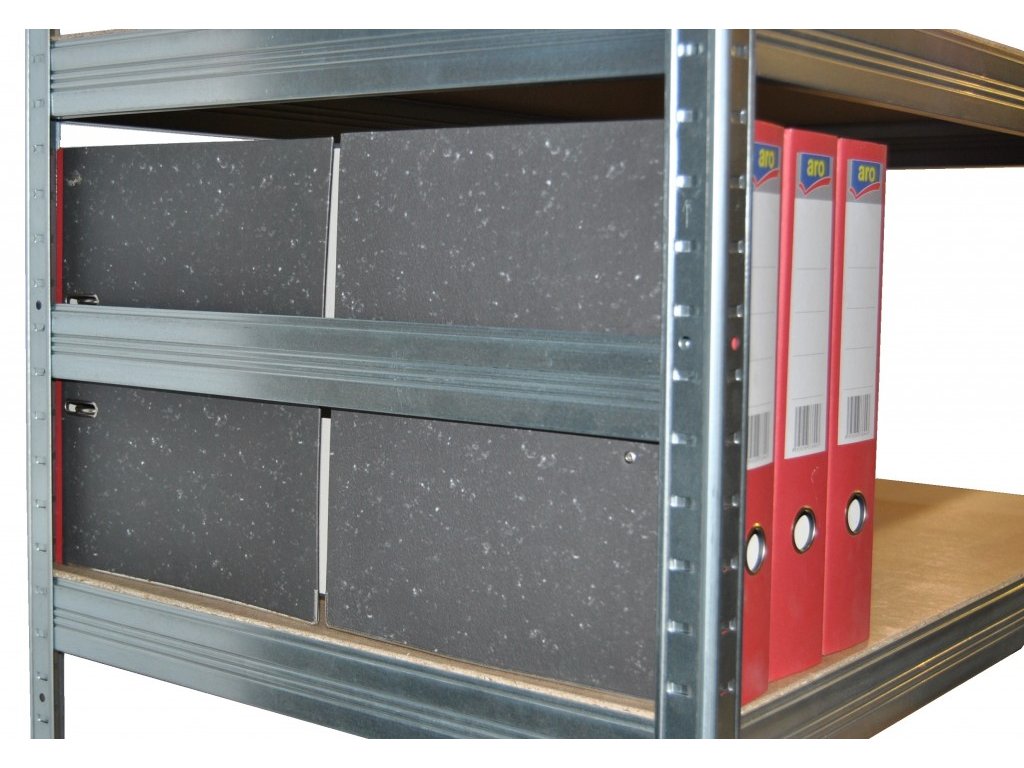 Die Begrenzung für Metallregal - verhindert von Sachen oder Ordner ausfall. Die Begrenzung kann in freiwillige höhe von 35 mm (umstellbar) sowie die Bodenträger installiert werden. In jedem Gestellzelle (der Platz zwischen den Fachböden) können Sie eine beliebige anzahl von Begrenzung installieren. Die Begrenzung setzen Sie ganz einfach in den Gestell ein (ohne Schrauben und Müttern).