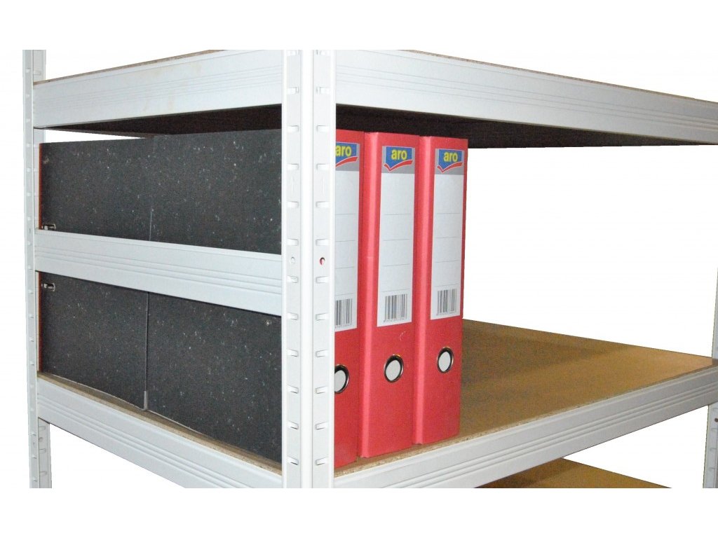 Die Begrenzung für Metallregal - verhindert von Sachen oder Ordner ausfall. Die Begrenzung kann in freiwillige höhe von 35 mm (umstellbar) sowie die Bodenträger installiert werden. In jedem Gestellzelle (der Platz zwischen den Fachböden) können Sie eine beliebige anzahl von Begrenzung installieren. Die Begrenzung setzen Sie ganz einfach in den Gestell ein (ohne Schrauben und Müttern).