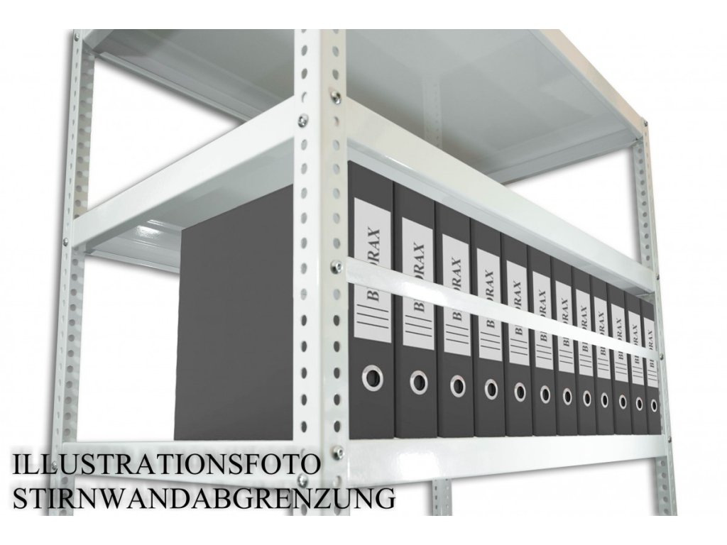 Die Begrenzung für das Schraubregal, verhindert von den Sachen oder Ordner ausfall. Die Sperre kann in beliebiger Höhe von 25 mm (umstellbar) sowie die Boden installiert werden. In jedem Gestell zelle (der platz zwischen den Fachböden) können Sie eine beliebige Anzahl von den Seitensperren zu installieren. Die Barriere wird mit Schrauben und Müttern befestigt. Es ist eine einfache Sicherung für ihre Ordner oder andere Ware gegen ausfall.