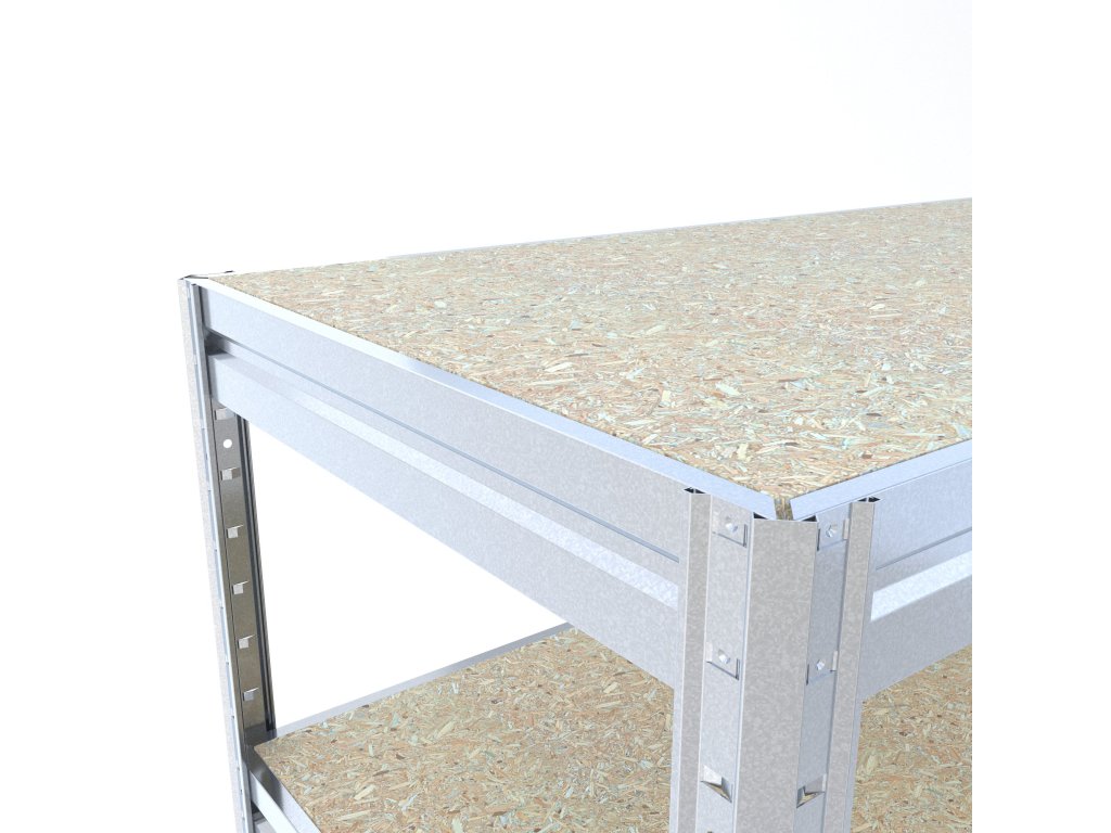 Schwerlastregal Biedrax, Metallkonstruktion und Holzspannplatte Boden JSD 10 mm. Regale mit JSD-Spanplattenböden eignen sich auch für Feuchträume. Feuchträume: Schuppen, Pergolen, Keller usw. Regale mit JSD-Spanplattenböden sind nicht für den Außenbereich mit direkter Einwirkung von Niederschlag (Regen, Schnee usw.) geeignet. Sehr einfaches Montagesystem - Bodenträger werden in Regalbeinen einfach eingesteckt. Die Bodenträger muss man mit Gummihammer bis am ende Reinpassen. Damit ist höhe Stabilität garantiert. Montagge ist auch ganz einfach und schnell (ohne Schrauben)! Regal ist sehr stabil und praktisch, schnelle Montage. Regal erhält auch Bodenversteifungen gegen durchbiegung.