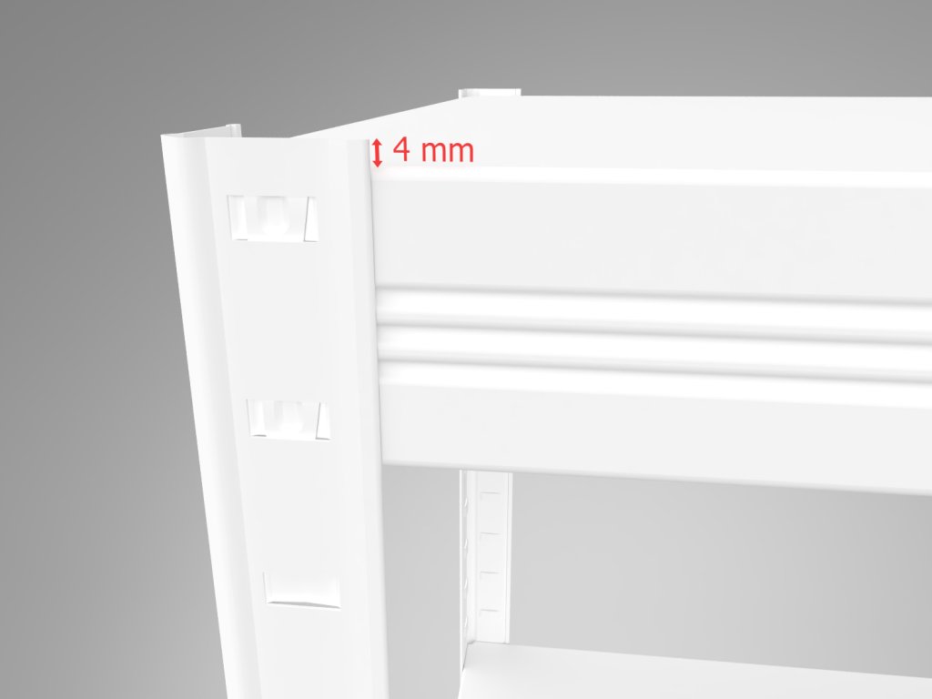 - Die Winkelprofile des Regals sind geteilt und werden mit Verbindern verbunden.