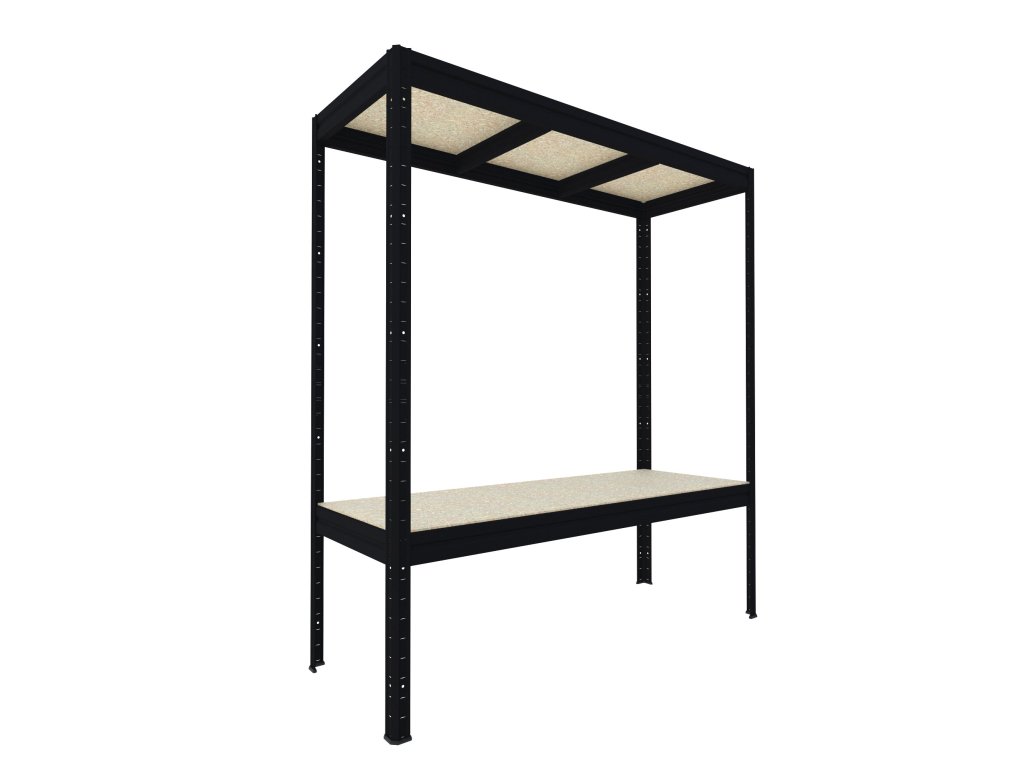 Grosses Kellerregal Biedrax 60 x 160 x 177 cm, 2 Fachböden - schwarz/Spanplatten JSD 15 mm, Fachlast 400 kg