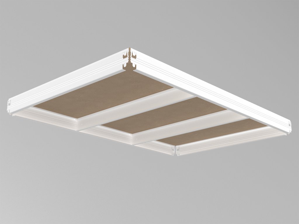 Die Packet enthält: 2 kurze Bodenträger, 2 lange Bodenträger, Holzspannplatte MDF 6 mm, 2 Versteifungen