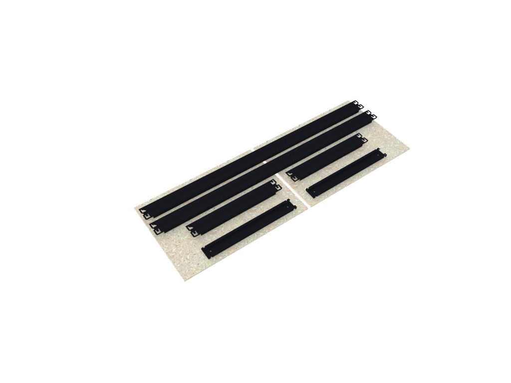- Die Packung enthält: 2 kurze Stützen, 2 lange Stützen, 2 Spanplatten JSD 10 mm, Versteifung