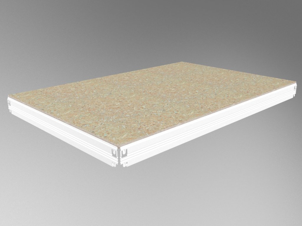 - Die Höhe des Fachbodens inklusive OSB 10 mm beträgt 62 mm (der Boden ragt 5 mm über die Trägerkante hinaus).