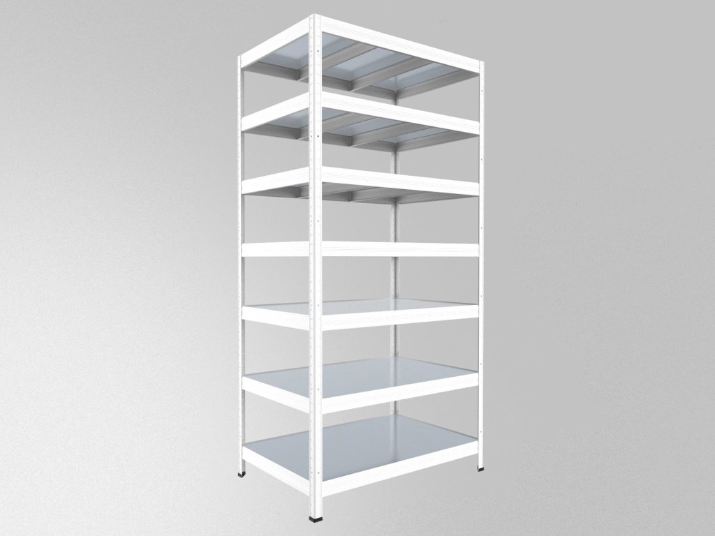 Lagerregal Biedrax 35 x 90 x 210 cm, Weiß, 7 Stahlböden verzinkt, Fachlast 150 kg pro Fachboden