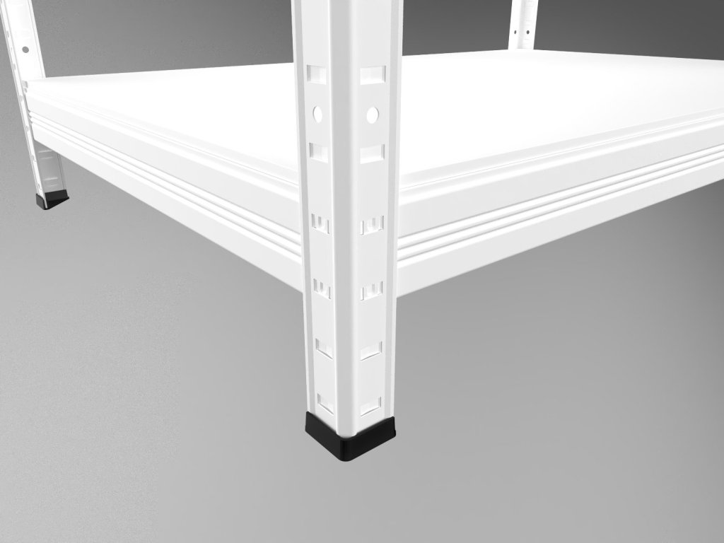 Lagerregal verfügt über 12 mm starke, weiß laminierte Spanplattenböden, die allseitig mit einer robusten ABS-Kante versehen sind. Das macht die Böden widerstandsfähiger gegen Feuchtigkeit und sehr pflegeleicht – einfach mit einem feuchten Tuch abwischen und trocknen. Die Montage ist dank des schraubenlosen Stecksystems schnell, einfach und sorgt für hohe Stabilität.