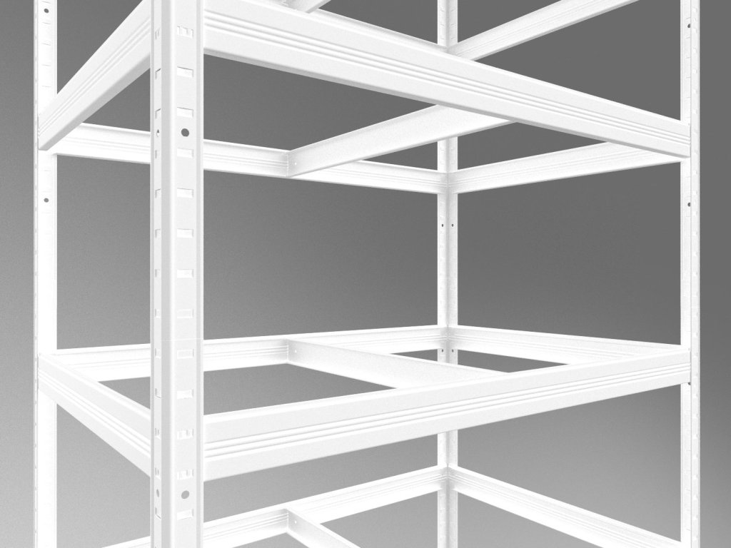 Lagerregal verfügt über 12 mm starke, weiß laminierte Spanplattenböden, die allseitig mit einer robusten ABS-Kante versehen sind. Das macht die Böden widerstandsfähiger gegen Feuchtigkeit und sehr pflegeleicht – einfach mit einem feuchten Tuch abwischen und trocknen. Die Montage ist dank des schraubenlosen Stecksystems schnell, einfach und sorgt für hohe Stabilität.