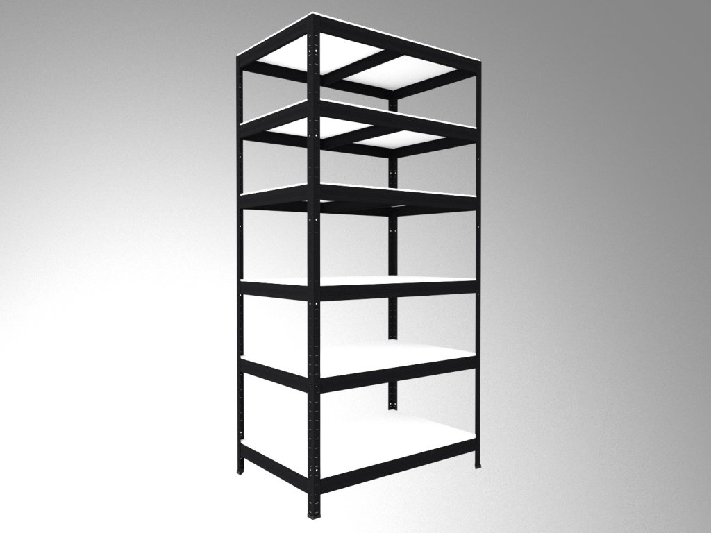 Metallregal Biedrax 50 x 90 x 210 cm, Schwarz, 6 Fachböden weiß laminiert 12 mm, Fachlast 200 kg pro Fachboden