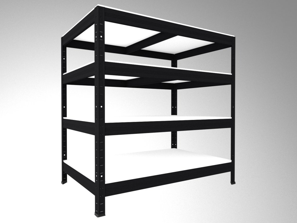 Metallregal Biedrax 60 x 60 x 120 cm, Schwarz, 4 Fachböden weiß laminiert 12 mm, Fachlast 200 kg pro Fachboden