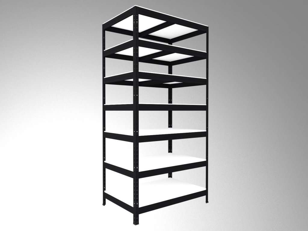 Metallregal Biedrax 60 x 75 x 210 cm, Schwarz, 7 Fachböden weiß laminiert 12 mm, Fachlast 200 kg pro Fachboden