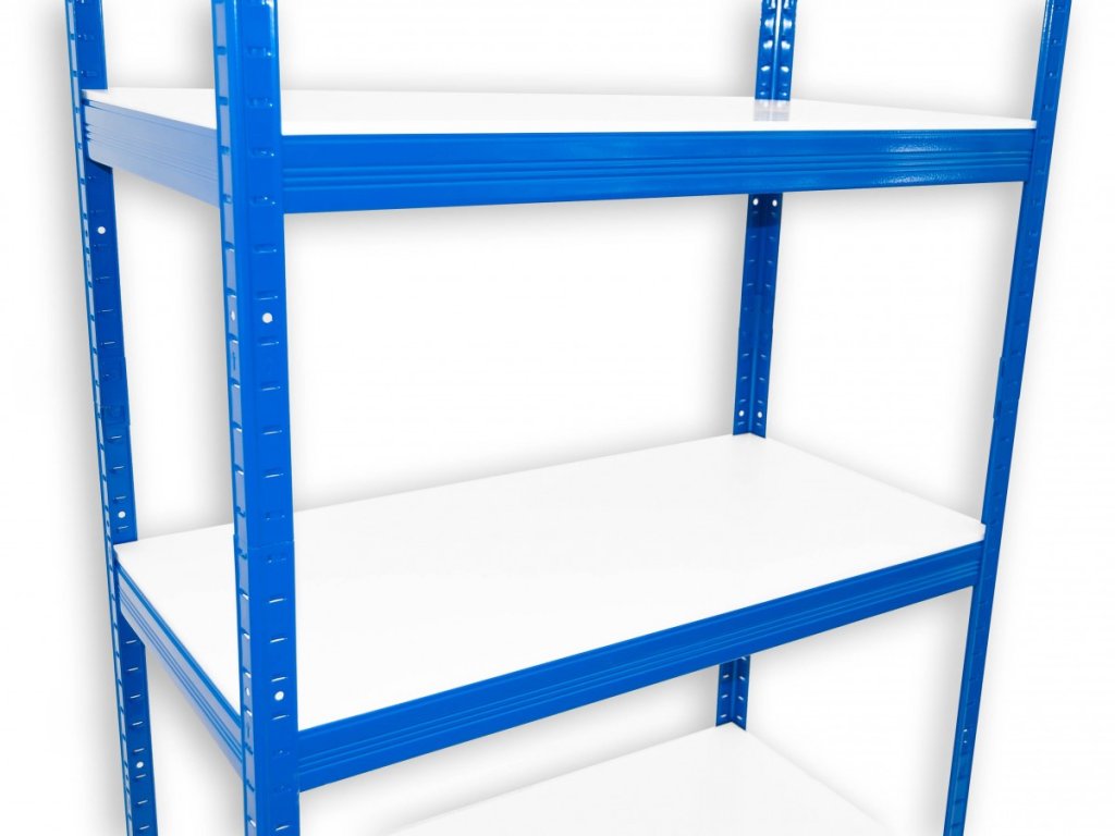 Metallregal mit Laminatböden - weiss beschichtet. Besteht aus einer Metallkonstruktion im Stecksystem. Die Laminatböden ist 12 mm und an allen 4 Seiten geklebt. Die Laminatplatte kann mit feuchten Tuch abgewischt werden und dann noch mit einem trockenen Tuch austrocknen. Die montage dauert cca 15 - 30 Minuten, dank des schraubloser Stecksystems. Die Fachböden können variabel eingesetzt werden. Die erste Fach sollte nicht höher als im 40 cm sein. Dieses Metallregal ist ideal für den Lager, den Keller, Werkstätte oder Garage