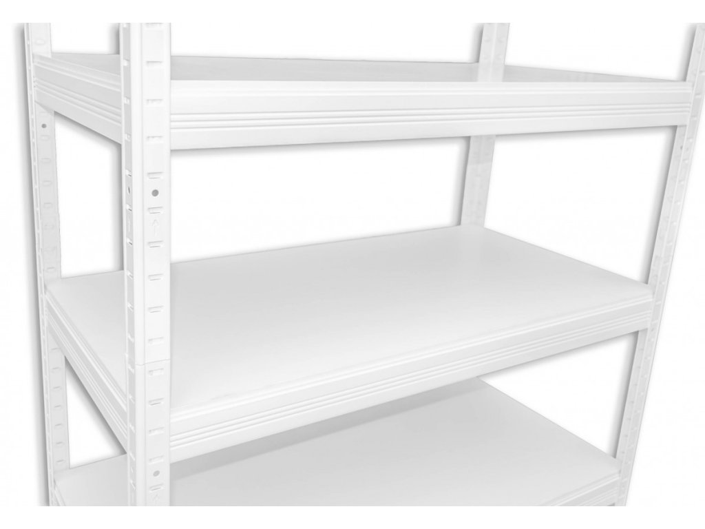 Metallregal mit Laminatböden - weiss beschichtet. Besteht aus einer Metallkonstruktion im Stecksystem. Die Laminatböden ist 12 mm und an allen 4 Seiten geklebt. Die Laminatplatte kann mit feuchten Tuch abgewischt werden und dann noch mit einem trockenen Tuch austrocknen. Die montage dauert cca 15 - 30 Minuten, dank des schraubloser Stecksystems. Die Fachböden können variabel eingesetzt werden. Die erste Fach sollte nicht höher als im 40 cm sein. Dieses Metallregal ist ideal für den Lager, den Keller, Werkstätte oder Garage