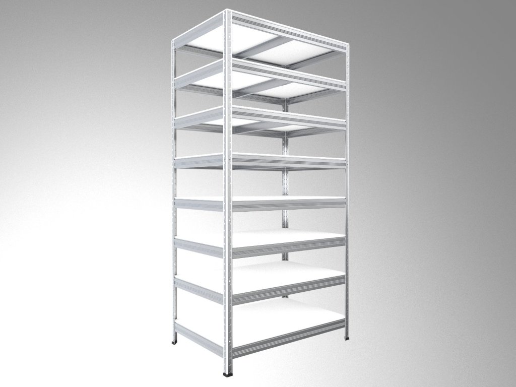 Metallregal mit weissböden Biedrax 60 x 75 x 240 cm verzinkt - 8 Laminatboden weiss 12 mm