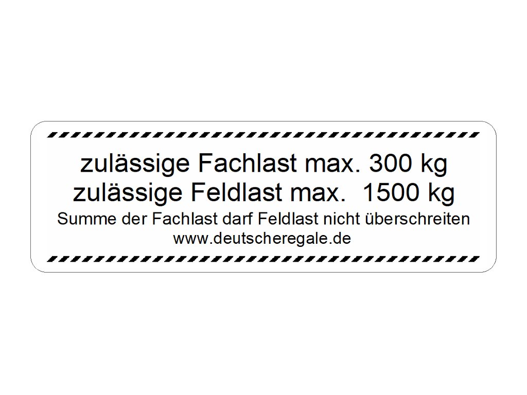 - Die Werte auf dem Etikett werden entsprechend der Tragfähigkeit der bestellten Regale angepasst