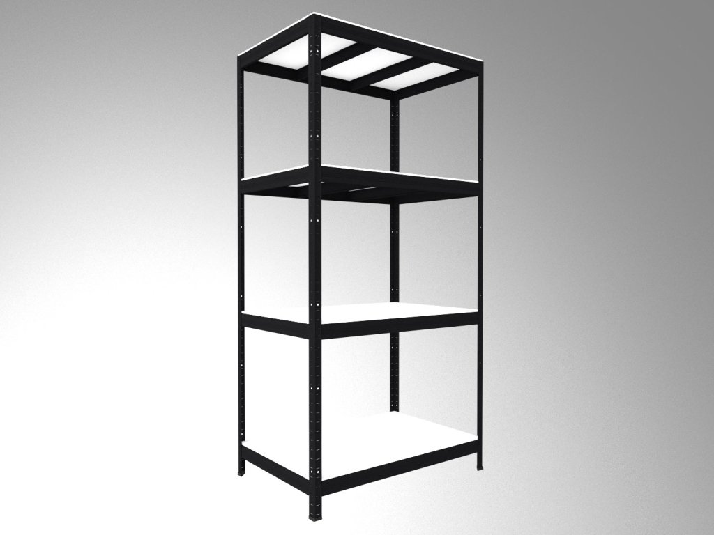 Steckregal Biedrax 35 x 120 x 180 cm, Schwarz, 4 Fachböden weiß laminiert 12 mm, Fachlast 200 kg pro Fachboden