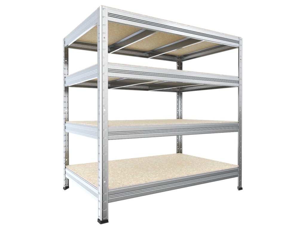 Steckregal Biedrax 35 x 120 x 90 cm, Verzinkt, 4 Fachböden OSB 10 mm, Fachlast 200 kg pro Fachboden