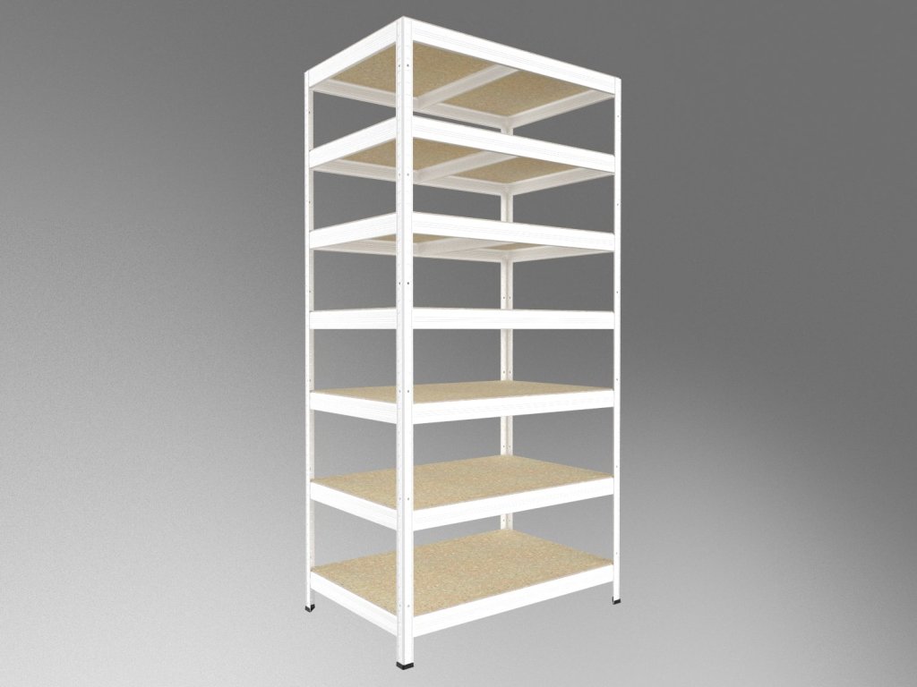 Steckregal mit Fachböden aus OSB-Spanplatten 10 mm. Regale mit OSB-Fachböden eignen sich auch für feuchte Räume wie Schuppen, Pergolen oder Keller. Sie sind jedoch nicht für den Außenbereich mit direkter Niederschlagseinwirkung geeignet. Das einzigartige schraubenlose Stecksystem ermöglicht eine schnelle Montage – die Bodenträger werden einfach in die Winkelprofile gesteckt und durch leichtes Klopfen fixiert. Diese schraubenlose Verbindung garantiert eine hohe Steifigkeit.