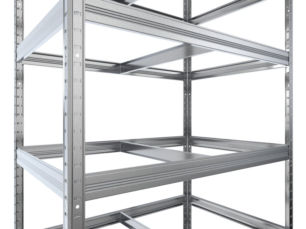 Steckregal mit Fachböden aus OSB-Spanplatten 10 mm. Regale mit OSB-Fachböden eignen sich auch für feuchte Räume wie Schuppen, Pergolen oder Keller. Sie sind jedoch nicht für den Außenbereich mit direkter Niederschlagseinwirkung geeignet. Das einzigartige schraubenlose Stecksystem ermöglicht eine schnelle Montage – die Bodenträger werden einfach in die Winkelprofile gesteckt und durch leichtes Klopfen fixiert. Diese schraubenlose Verbindung garantiert eine hohe Steifigkeit.