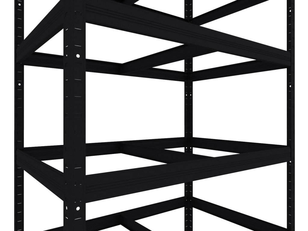 Steckregal mit Fachböden aus OSB-Spanplatten 10 mm. Regale mit OSB-Fachböden eignen sich auch für feuchte Räume wie Schuppen, Pergolen oder Keller. Sie sind jedoch nicht für den Außenbereich mit direkter Niederschlagseinwirkung geeignet. Das einzigartige schraubenlose Stecksystem ermöglicht eine schnelle Montage – die Bodenträger werden einfach in die Winkelprofile gesteckt und durch leichtes Klopfen fixiert. Diese schraubenlose Verbindung garantiert eine hohe Steifigkeit.