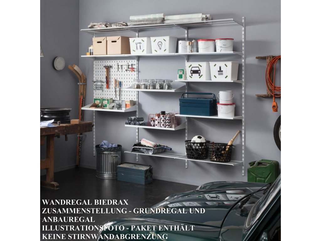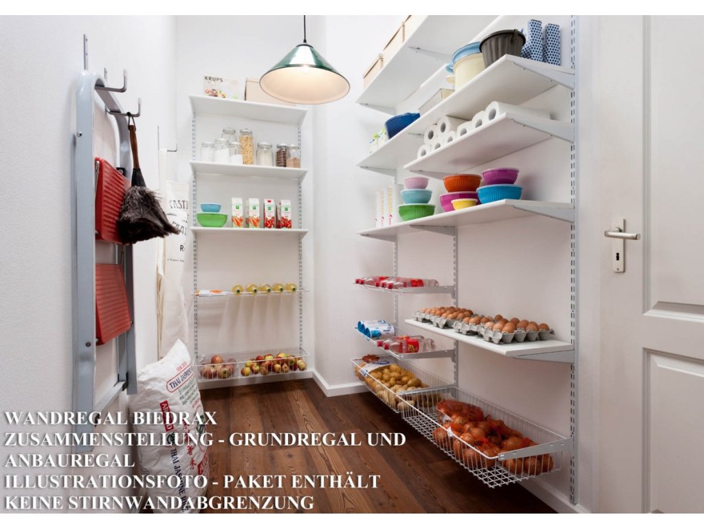 drahtboden zum wandregal Biedrax - komplet mit träger - metallkonstruktion ist mit pulverfarbe beschichtet. wandregalsystem Biedrax ist universal system benutzbar überall im haushalt. kann man als wandregal im speisekammer für übliche sachen benutzen oder auch als schuhregal für saisonschuhe. im abstelkammer für versorgung. in der werkstatt kann auch sehr praktisch sein. aufgrund der gute qualität kann man diese wandsystem auch i umkleideraum benützen.