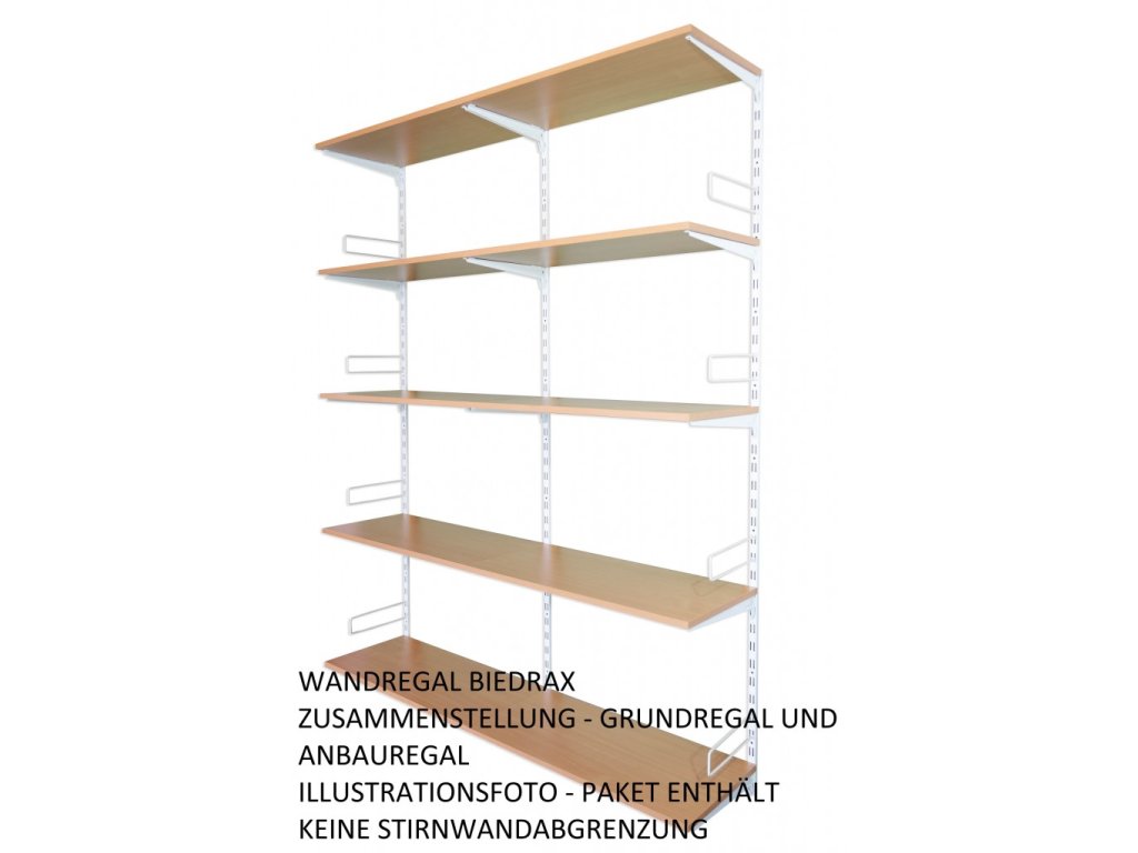 Das Anbauwandregal enthält in der Packung nur eine Lochschiene auf der Wand mit löchern in zwei Reihen. Wenn Sie eine Zusammenstellung von Regalen brauchen, wählen Sie einen Grundwandregal und dazu dann das Anbauregal oder Regalen.