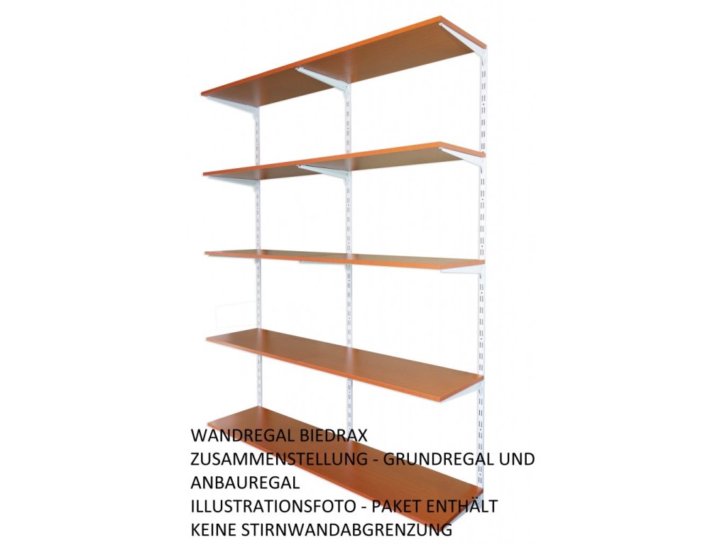 Das Anbauwandregal enthält in der Packung nur eine Lochschiene auf der Wand mit löchern in zwei Reihen. Wenn Sie eine Zusammenstellung von Regalen brauchen, wählen Sie einen Grundwandregal und dazu dann das Anbauregal oder Regalen.