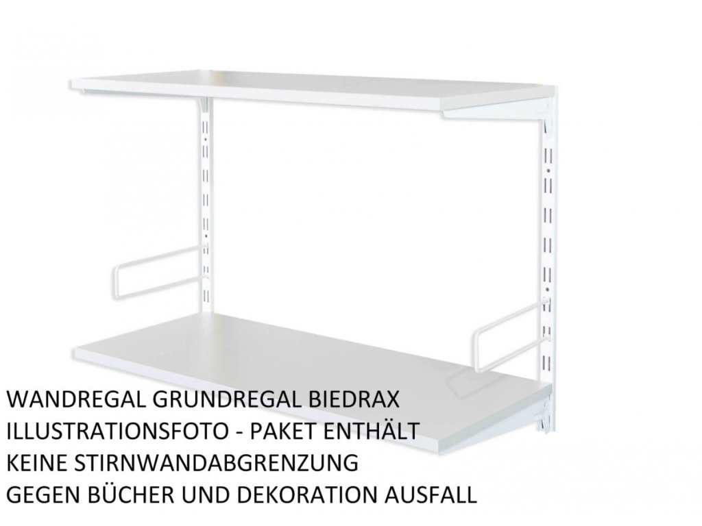 Das Anbauwandregal enthält in der Packung nur eine Lochschiene auf der Wand mit löchern in zwei Reihen. Wenn Sie eine Zusammenstellung von Regalen brauchen, wählen Sie einen Grundwandregal und dazu dann das Anbauregal oder Regalen.